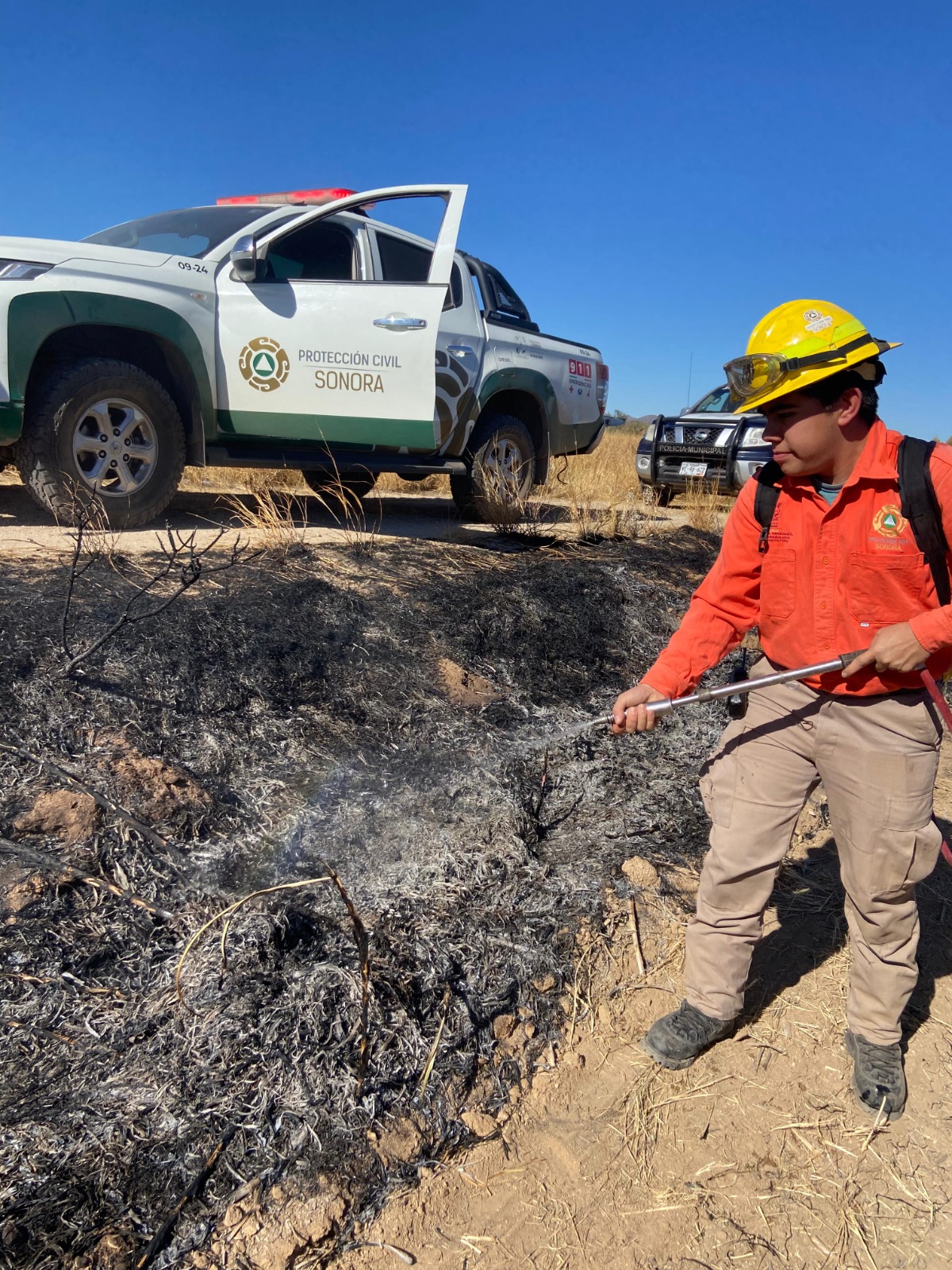 Integrantes de la Brigada Estatal de Manejo de Fuego de Sagarhpa y Protección Civil Sonora así como autoridades municipales, liquidaron un incendio forestal que se presentó en la comunidad de Pesqueira, en el municipio de San Miguel de Horcasitas.