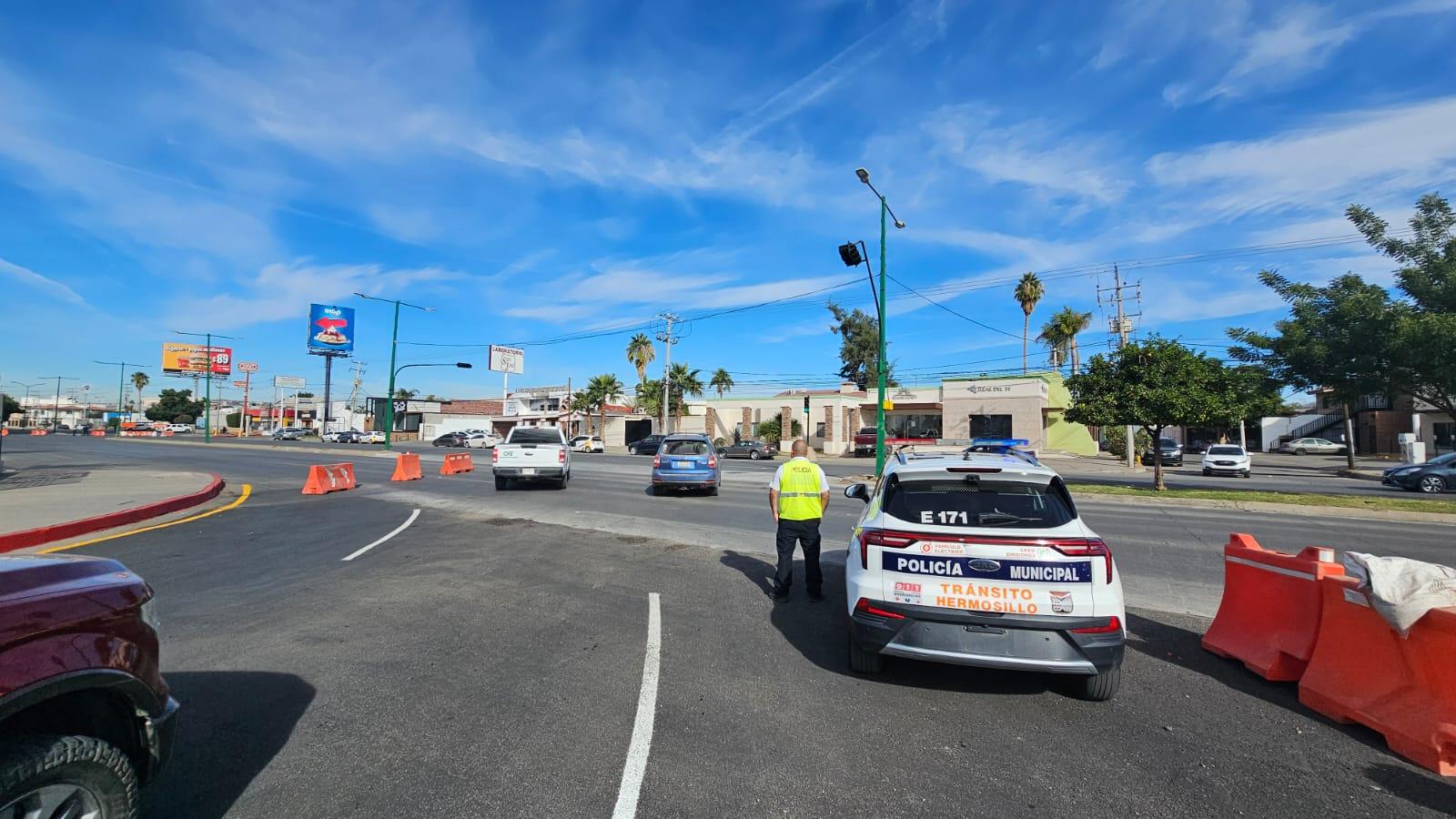Ovier Quintero, vocero de Tránsito Municipal, destacó que elementos que conforman el operativo vial orientaron a conductores y dirigieron la afluencia vehicular rumbo a las vialidades alternas habilitadas, mientras se lleva a cabo esta obra que beneficiará a miles de hermosillenses.