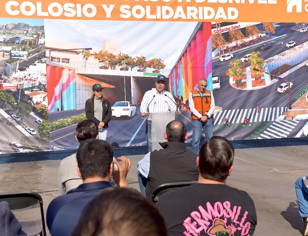 Hermosillo, Sonora; 4 de enero, 2025.- “Con el arranque de esta obra vamos a ver un Hermosillo que crece, se transforma y mejora nuestra infraestructura”, expresó Antonio Astiazarán Gutiérrez al constatar los trabajos en la obra del paso a desnivel en el cruce de Colosio y Solidaridad.