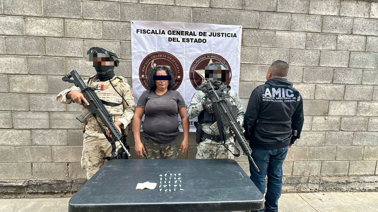 Hermosillo, Sonora, 9 de enero de 2025.- En cumplimiento a una orden de cateo, la Agencia Ministerial de Investigación Criminal (AMIC), Guardia Nacional (GN) y Secretaría de la Defensa Nacional (DEFENSA), capturaron a Petra Josefina “N”, de 44 años, así como diversos indicios relacionados con la probable venta de droga en Hermosillo.