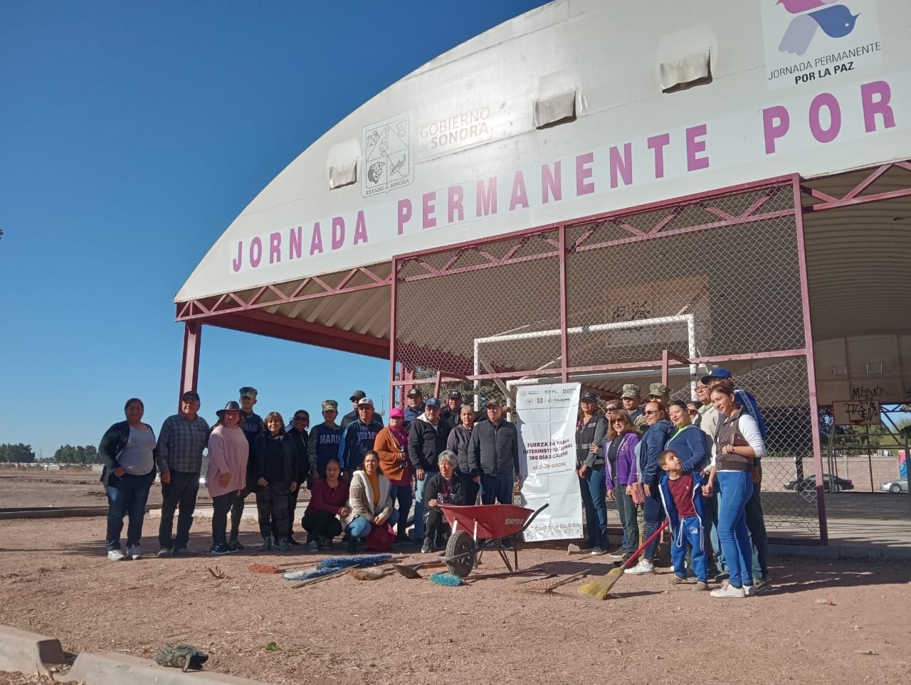 Como parte del programa Juntos por Cajeme y en la búsqueda de mejorar las condiciones de los espacios públicos y fomentar la participación ciudadana, durante el fin de semana la Secretaría de Bienestar del Gobierno Municipal de Cajeme, en coordinación con la Secretaría de Marina, llevó a cabo una jornada de limpieza y pintura en el espacio público conocido como “El Tejabán”, ubicado en el fraccionamiento Villa Bonita, sobre las calles Coahuila y de la Paz.