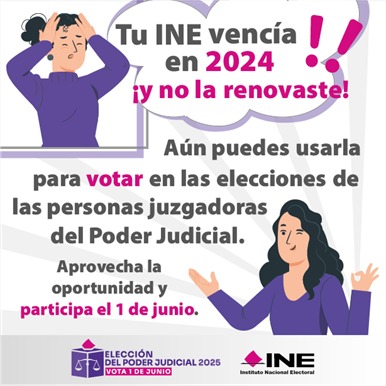 El Instituto Nacional Electoral (INE) decidió ampliar la vigencia de las Credenciales que debían ser renovadas durante el año 2024, para darle oportunidad a las ciudadanas y ciudadanos que no las renovaron, para que puedan participar en las elecciones del 1 de junio próximo, para elegir a las personas juzgadoras del Poder Judicial.