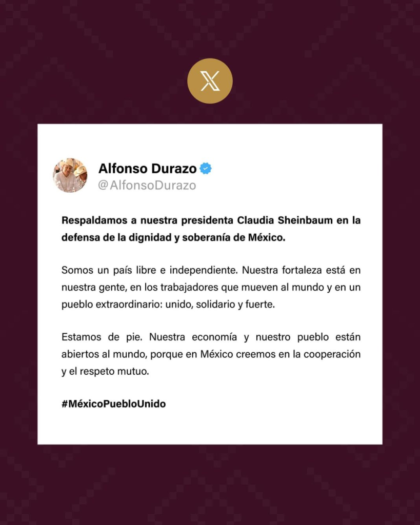No tengo ninguna duda de que ante cualquier intento de intervención extranjera todos los mexicanos debemos de estar unidos. Lo que Donald Trump está haciendo con nuestro México es algo que nos debe despertar y olvidarnos de nuestras diferencias ideológicas, culturales y hasta económicas para respaldar las decisiones que tome la presidenta Claudia Sheinbaum en el caso de los abusivos aranceles del 25 por ciento impuestos a productos y mercancías que exportamos hacia el vecino país del norte. No es posible que aún viendo la tormenta no nos hinquemos y que muchos, los enemigos o quienes no están de acuerdo con la 4T aprovechen para tratar de echar sal en la herida y que los ciudadanos pensemos que todo es culpa de Morena, el partido en el poder.