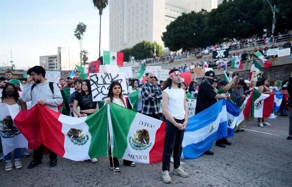 Los Ángeles.- Miles de personas protestaron en Los Ángeles contra las políticas anti migración del Presidente Donald Trump y las deportaciones masivas.