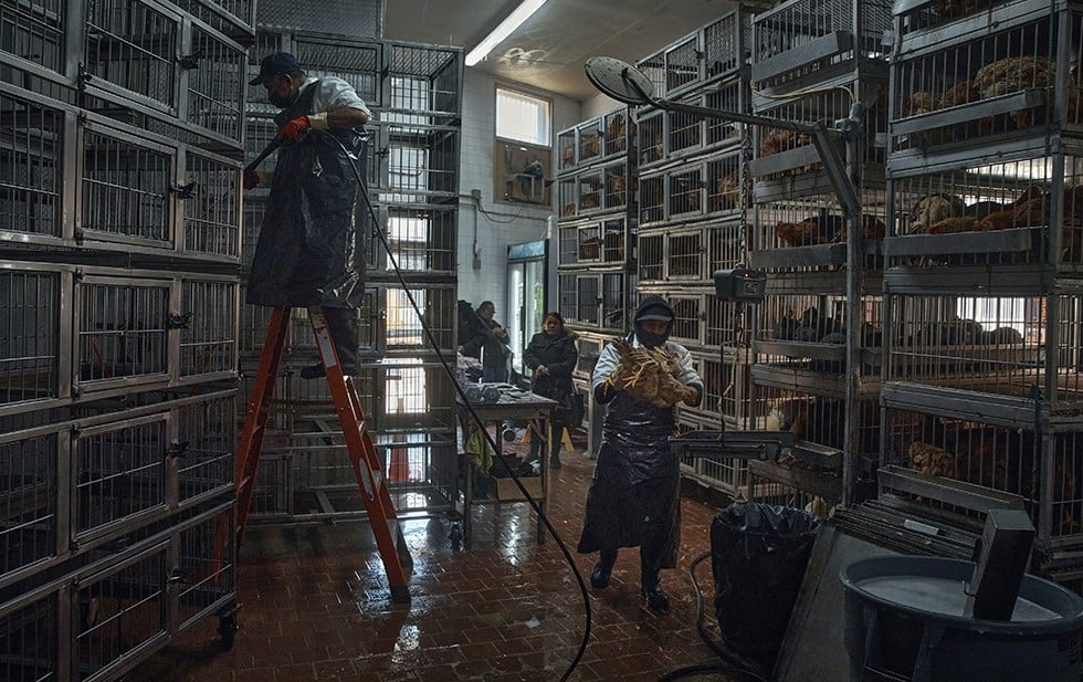 “El público está entrando a mercados donde nadie sabe si hay brotes de gripe aviar, y luego se lleva a casa aves muertas que podrían estar infectadas, o no”, señaló Edita Birnkrant, directora ejecutiva de NYCLASS —un organismo defensor de los derechos de los animales—, que ha estado alertando sobre las condiciones dentro de los aproximadamente 70 mercados de animales vivos de la ciudad. “Es absurdo”.
