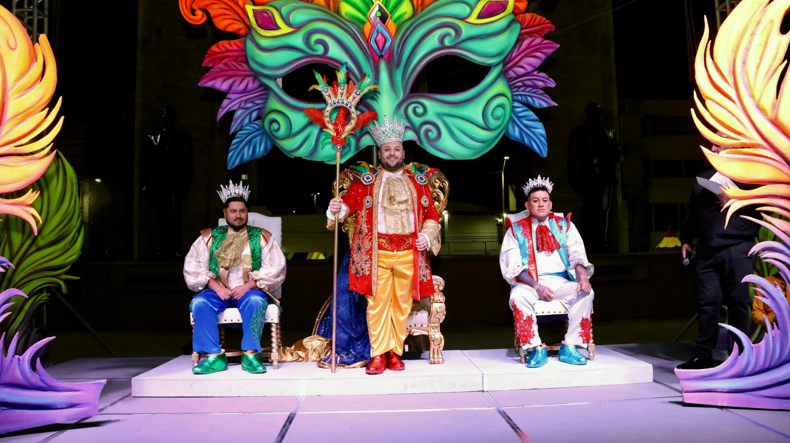 La alcaldesa Karla Córdova González acompañada del regidor Jesús Antonio Dórame Acevedo entregó la corona y báculo de poder a Daniel Díaz Rodríguez como rey del Carnaval 2025; el príncipe, Jesús Enrique Arce Murua recibió la distinción de parte de la regidora María del Pilar Hernández Félix y del Síndico Municipal Celestino Sarabia Tautimez; y el duque, Juan Antonio Gallegos Guillot fue reconocido por la regidora y presidenta de la Comisión de Educación y Cultura Alma Yvonne Cota Lugo y el Secretario del Ayuntamiento Herman Aaron García Luna.