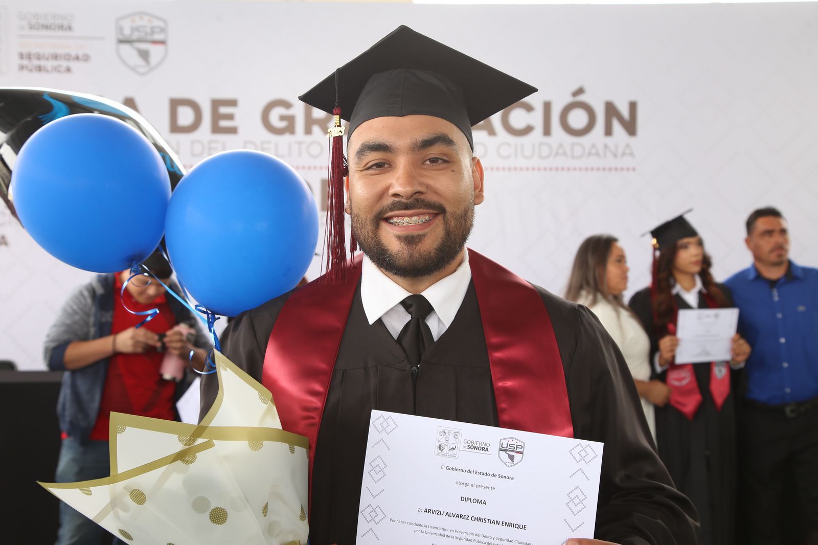“Es un logro más para mí y mi familia el haber culminado esta licenciatura ya que formo parte de las filas de la policía estatal, orgullosamente egresado de aquí, anteriormente Isspe, hoy Universidad de la Seguridad Pública y muy orgulloso de haber culminado en este camino de los tres años y medio que duró la licenciatura, combinándolo con el trabajo, el estudio para estar mejor preparado. Le daría las gracias por estar volteando a ver el tema de seguridad porque sí se tenía un poco abandonado, sí se está trabajando en equipamiento, la preparación más que nada de los policías, sí se está notando la diferencia y le daría las gracias”, mencionó Christian Arvizu.