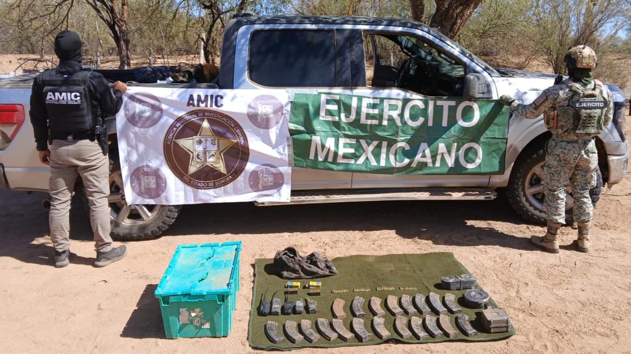 Trincheras, Sonora, 13 de marzo de 2025.- La Fiscalía General de Justicia del Estado de Sonora (FGJES), en coordinación con la Secretaría de la Defensa Nacional (DEFENSA) y la Agencia Ministerial de Investigación Criminal (AMIC) realizaron una serie de operativos en Trincheras, Sonora, que resultaron en el aseguramiento de vehículos con reporte de robo, armas de fuego y municiones, así como indicios clave para investigaciones en curso.
