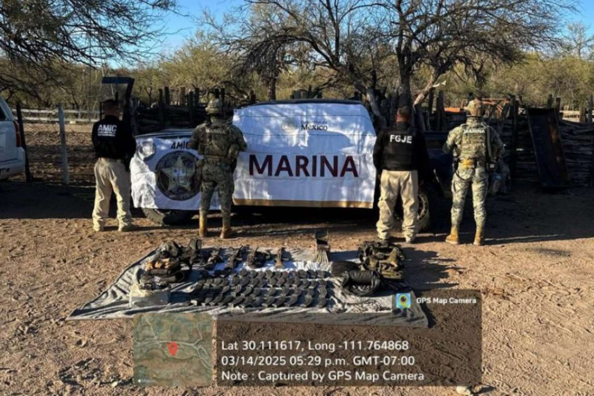 En dos acciones distintas en Sonora, elementos de la Secretaría de Marina (Semar) detuvieron a cuatro presuntos integrantes de Los Pelones y le aseguraron un arsenal a Los Deltas, ambos grupos aliados del grupo delincuencial conocido como Los Chapitos.