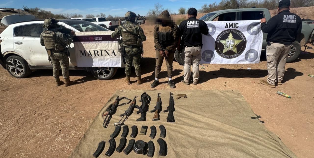 Trincheras, Sonora, a 19 de marzo de 2025.- En el combate contra actividades ilícitas de la delincuencia para garantizar la paz en la entidad, el operativo coordinado entre la Agencia Ministerial de Investigación Criminal (AMIC) y la Secretaría de Marina Armada de México (SEMAR) aseguraron armas y cartuchos de alto poder, equipo táctico, vehículos y se realizó la captura de un masculino durante recorridos tácticos estratégicos efectuados en el municipio de Trincheras.