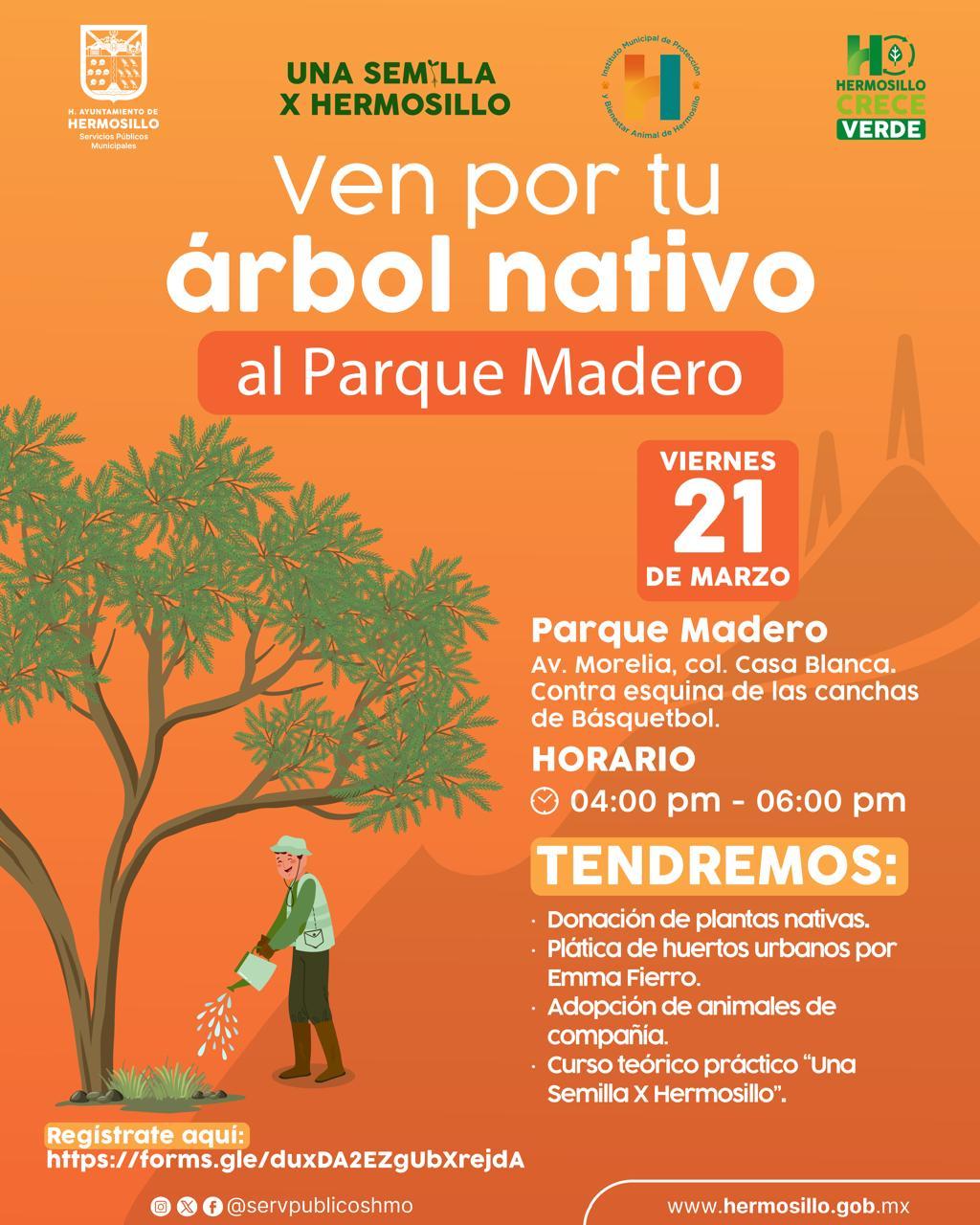 Hermosillo, Sonora; 19 de marzo, 2025.- Para celebrar el inicio de la primavera, el Ayuntamiento de Hermosillo a través de la Dirección de Parques y Jardines, tendrá este viernes 21 de marzo una donación de 500 árboles nativos, y en esta ocasión además contarán con especies como Guamúchil, lavanda y albahaca.