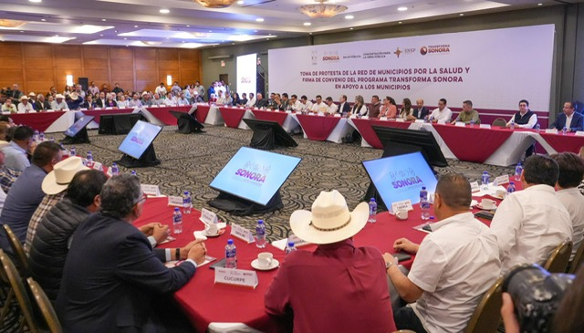 Ayer el gobernador Durazo se reunió con los 72 alcaldes y alcaldesas de nuestra entidad. El objetivo fue firmar un convenio para operar los recursos de “Transforma Sonora” y ahí mismo le tomó la protesta a la doctora Karla Córdova, alcaldesa de Guaymas, como Presidenta de la Red Sonorense de Municipios por la Salud. La alcaldesa fue electa por sus compañeras y compañeros munícipes en días pasados, atendiendo una convocatoria de la Secretaría de Salud. Ayer el de Bavispe le tomó la protesta.