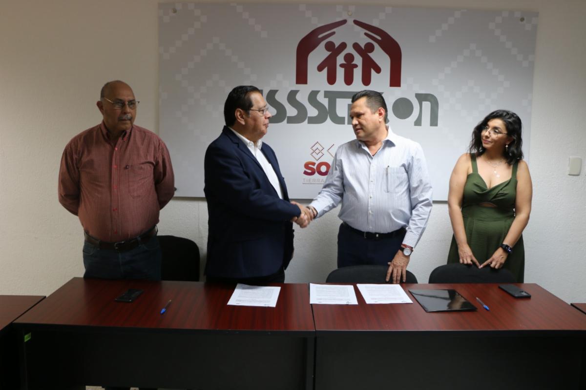 Sergio Pablo Mariscal Alvarado, rector de UTS y Luis Alonso Osuna Cota, director general de Isssteson firmaron un convenio de colaboración, que tiene como objetivo que los estudiantes de Técnico Superior Universitario (TSU) y de licenciatura en Enfermería de la UTS, puedan realizar sus estadías profesionales en dicha institución de salud.