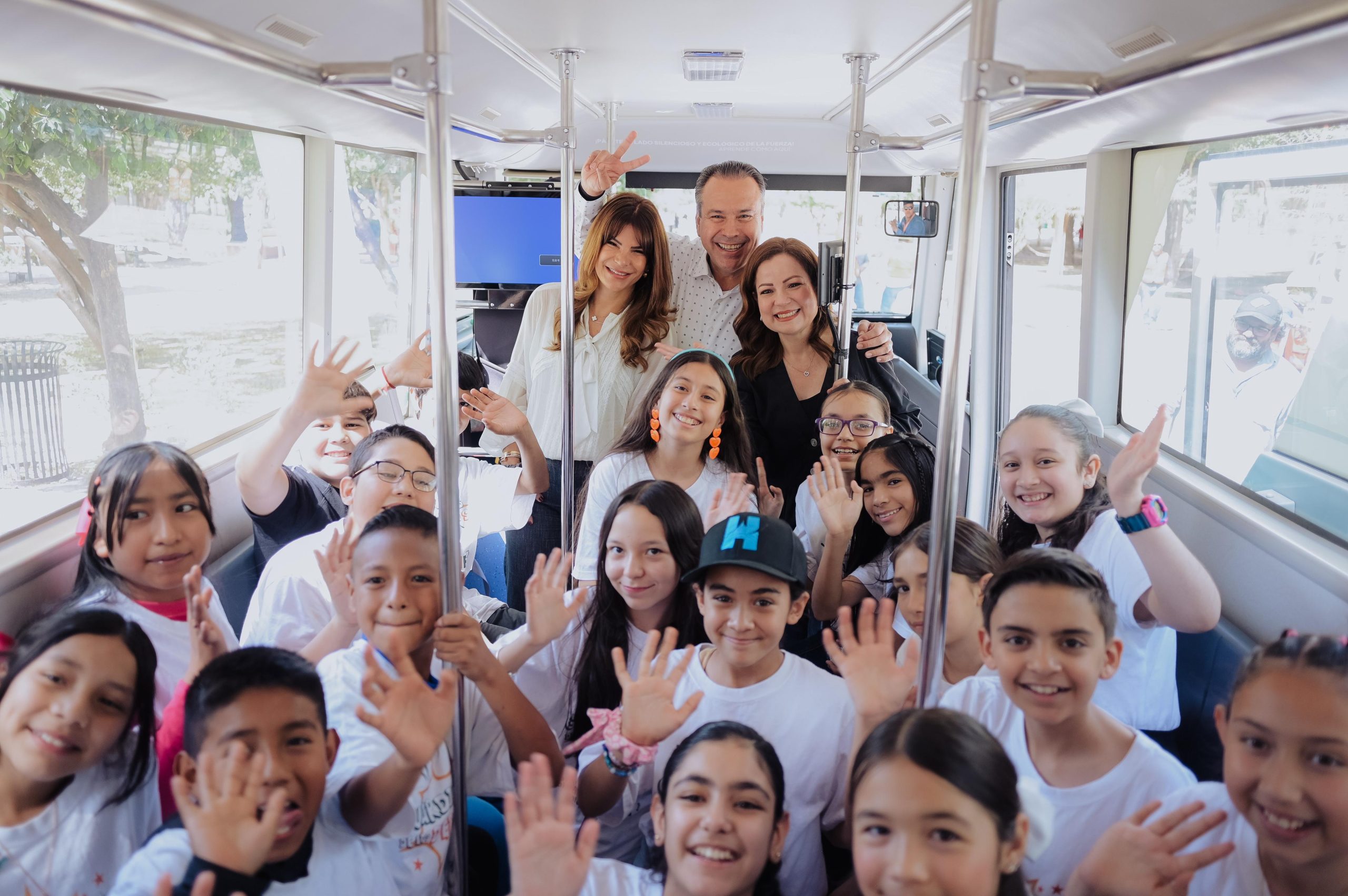 Como parte de las actividades niñas, niños se trasladaron en el transporte eléctrico HBus al Parque Madero donde autoridades municipales ofrecieron su respaldo para continuar desarrollándose y cumplir sus sueños.
