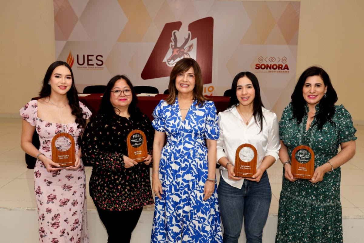 Estuvo presente la titular de la Secretaría de las Mujeres de Sonora, Sheila Hernández Alcaráz, quien reiteró el compromiso del Gobierno de Sonora con la equidad de género y el empoderamiento femenino, además de reconocer la iniciativa de la UES para distinguir a sus mujeres destacadas.