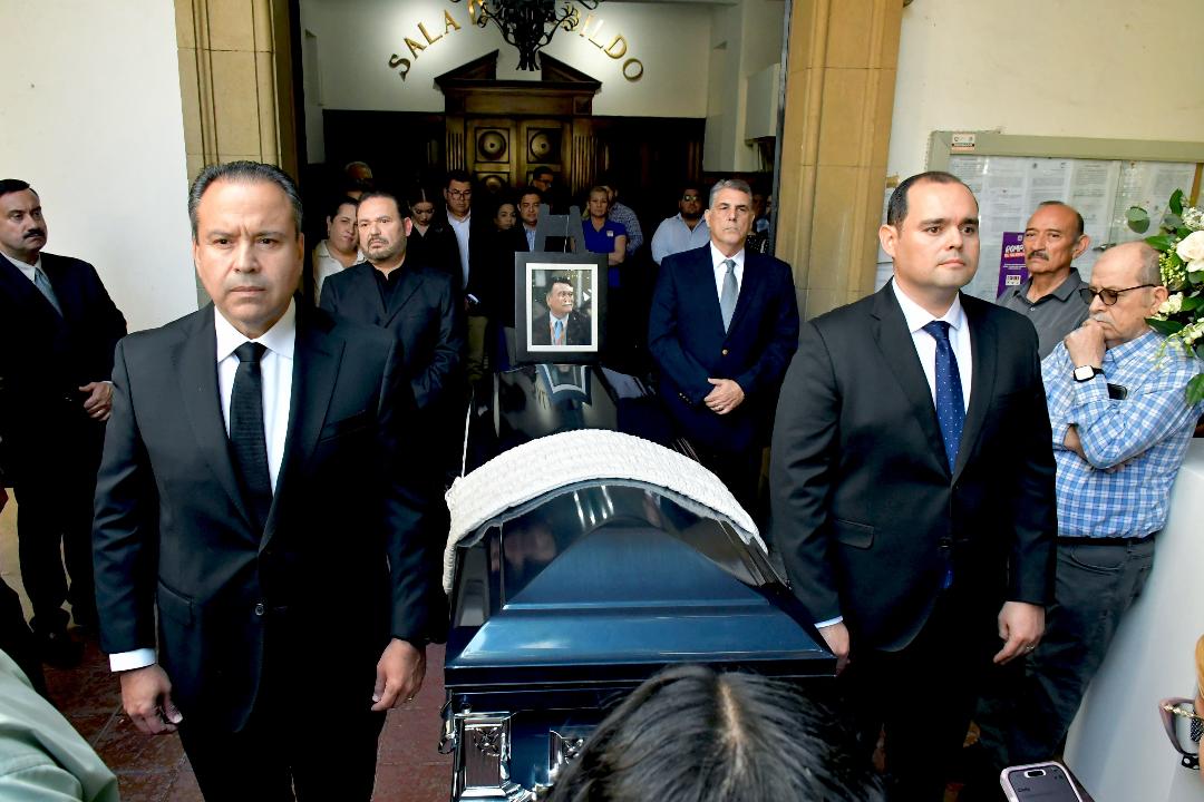 Familiares y amistades de Casimiro Navarro Valenzuela honraron su memoria acompañando con aplausos la salida de su féretro de las instalaciones del Palacio Municipal.
