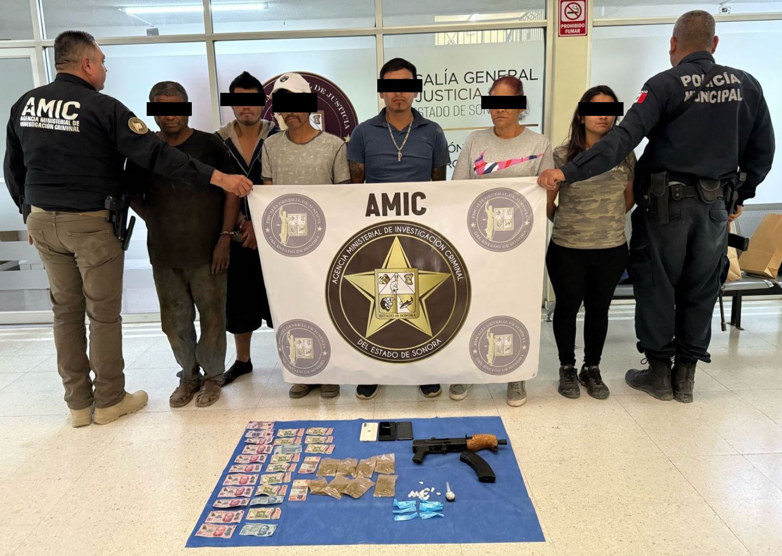Caborca, Sonora, 5 de abril de 2025.- La Fiscalía General de Justicia del Estado de Sonora (FGJES) formuló imputación y obtuvo la vinculación a proceso para Rosa Elva “N”, de 55 años, Enrique “N”, de 51, Jorge Moisés “N”, de 27, Pedro “N”, de 41, Jaime “N”, de 32 y Gabriela “N”, de 31, por su probable responsabilidad en los delitos de contra la salud en su modalidad de narcomenudeo con fines de venta y asociación delictuosa.