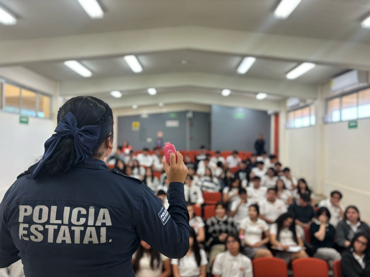 En el encuentro con alumnas y alumnos de los turnos matutino y vespertino del plantel, la Policía Estatal concientizó sobre los riesgos y consecuencias del uso de vapeadores, el consumo de drogas, el impacto de la violencia y la importancia de fomentar valores como el respeto.