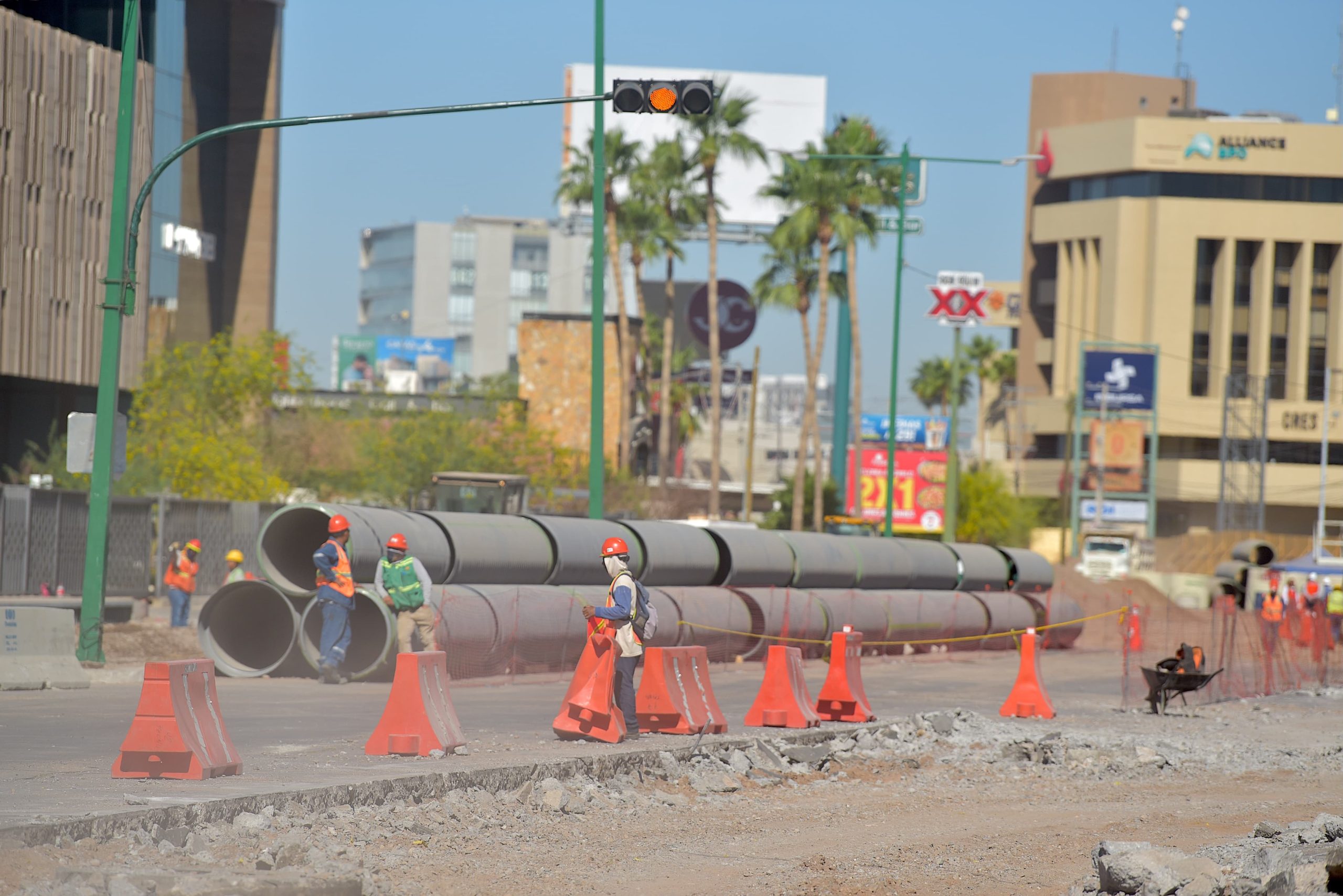 “Seguimos trabajando en la instalación de la línea provisional de agua potable, también en la colocación de la base hidráulica del cuerpo sur del Colosio, para el 21 de abril empezar con la pavimentación de concreto de este tramo y cambiar el tráfico a ese lado el 28 de abril para volver a desviarlo por la calle Obregón”, explicó.