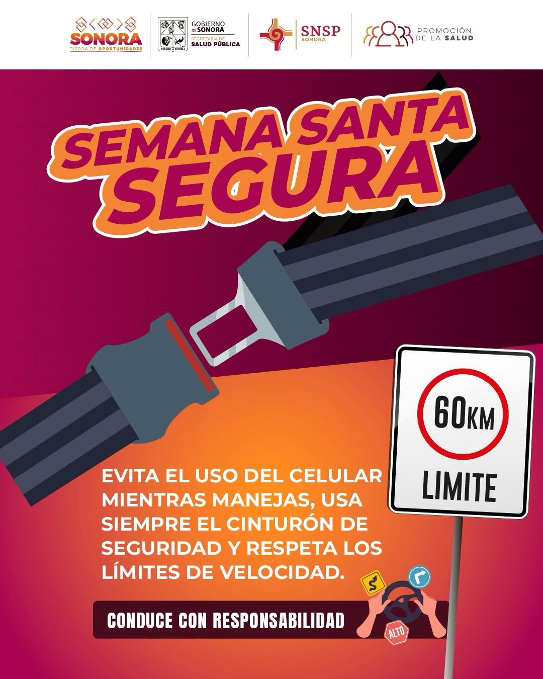 Hermosillo, Sonora; 18 de abril de 2025.- La Secretaría de Salud del Gobierno de Sonora (SSP), a través del Consejo Estatal para la Prevención de los Accidentes (Coepra), hizo un llamado a la población para que extreme precauciones al conducir durante esta temporada vacacional.