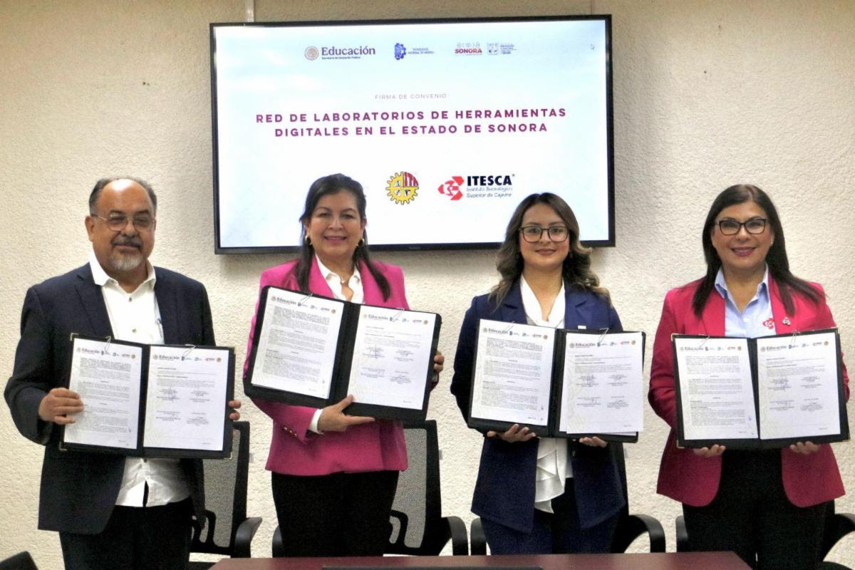 Cananea, Sonora; 20 de abril de 2025.- Con el objetivo de fortalecer la enseñanza de las ingenierías en el estado mediante el uso de tecnologías emergentes, el Instituto Tecnológico Superior de Cananea (Itescan) fue sede de la firma del convenio para la conformación de la Red Estatal de Tecnologías Digitales para la Enseñanza de las Ingenierías (Retdei).