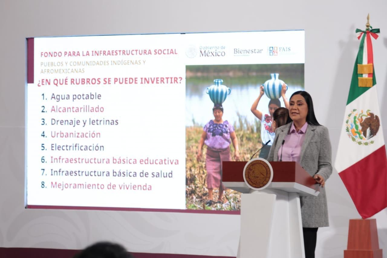 “El Fondo de Aportaciones para la Infraestructura Social (FAIS), este año como ustedes saben, se destinó un componente para la población indígena, serán 12 mil 374 millones de pesos de inversión para apoyar a 20 mil 360 comunidades de todo el país”.