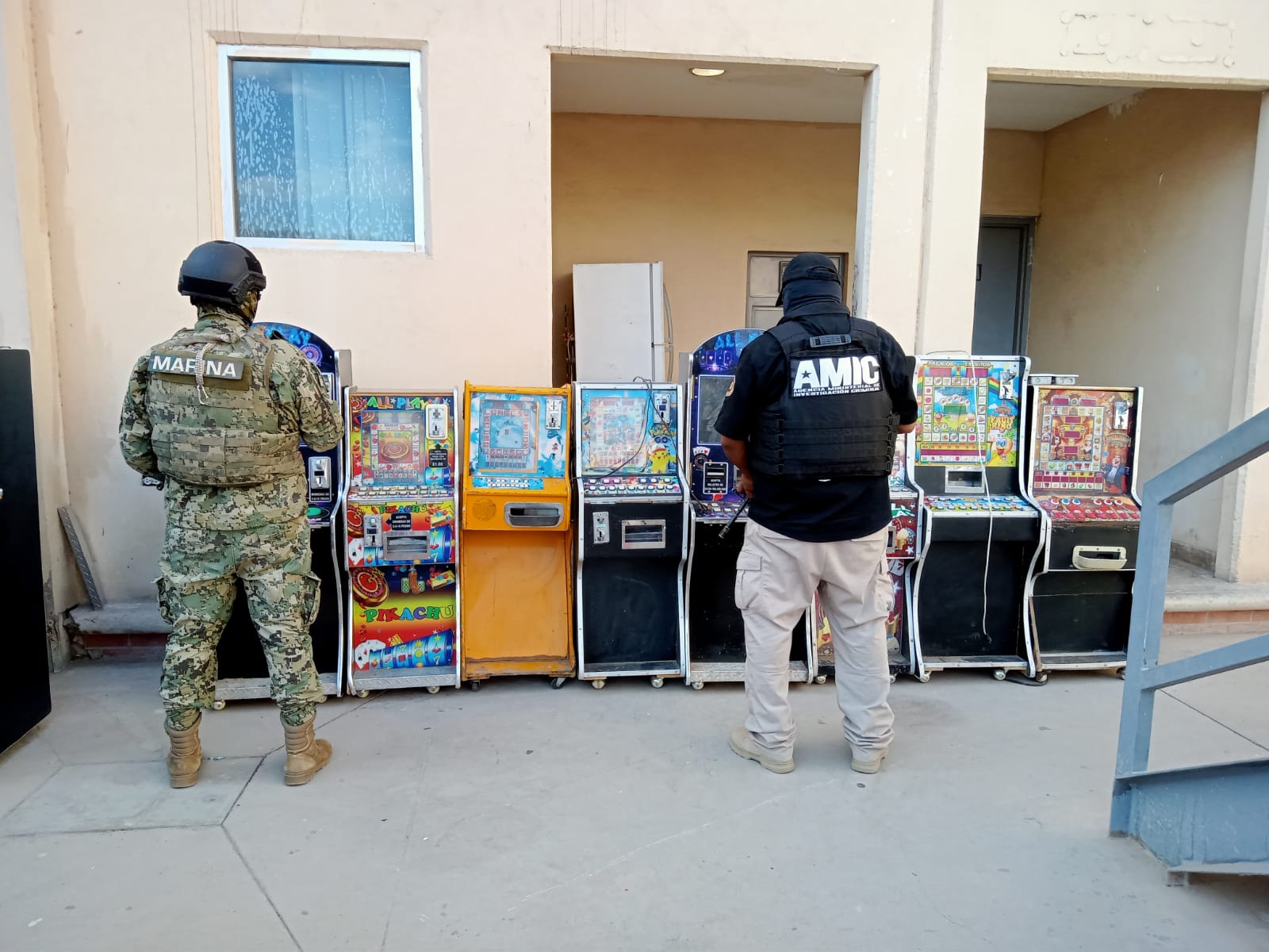 Operativo conjunto AMIC-SEMAR asegura ocho máquinas tragamonedas en Ciudad Obregón