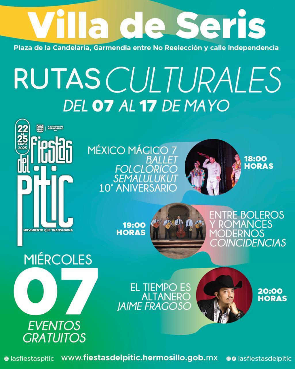 Hermosillo, Sonora; 6 de mayo, 2025.- Hermosillo se llena de emoción rumbo a las Fiestas del Pitic con las Rutas Culturales que el Ayuntamiento de Hermosillo realizará del 7 al 17 de mayo para celebrar con artistas del municipio, la grandeza de Hermosillo en la zona urbana y rural.