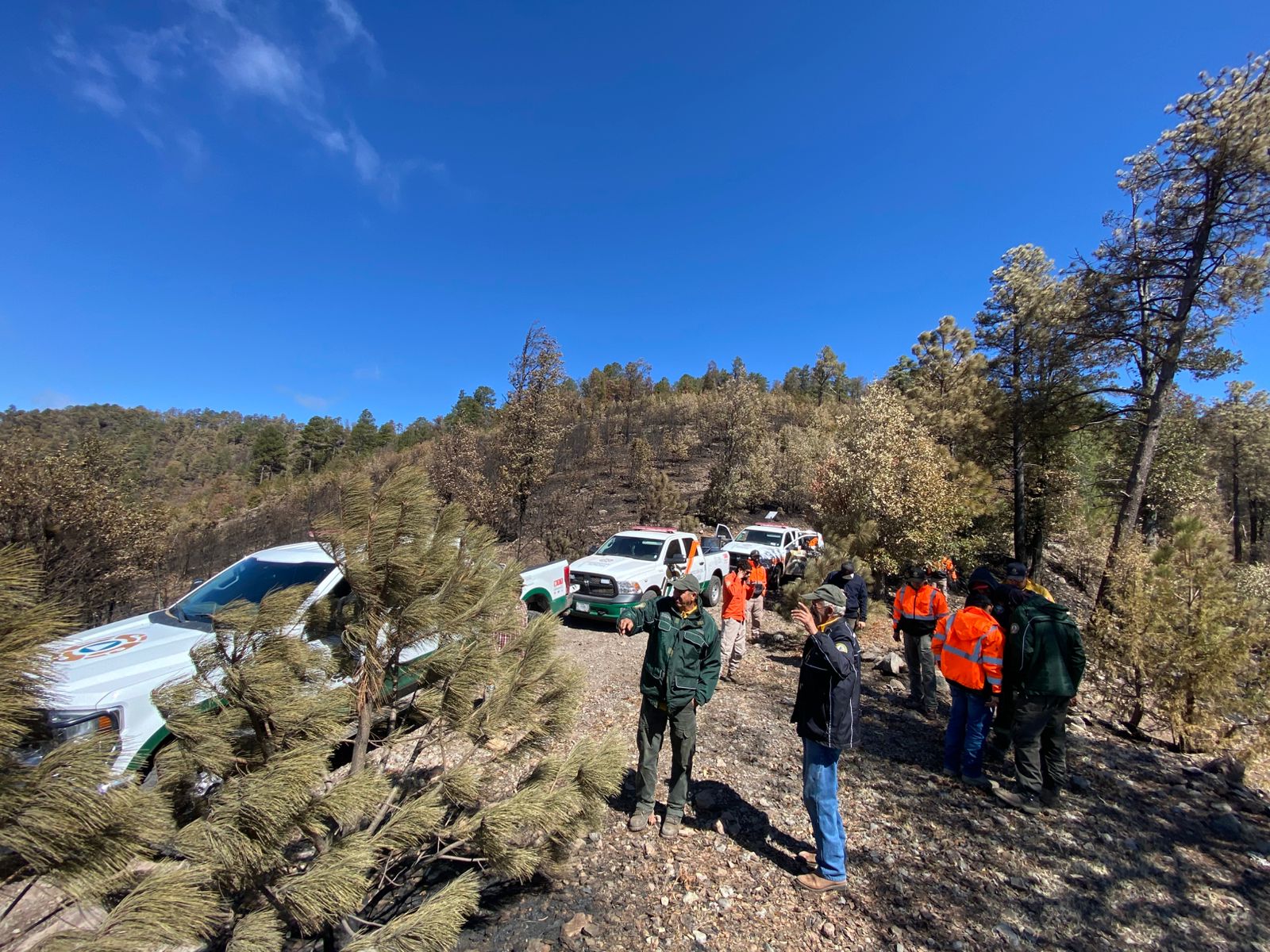 En el predio Los Caballos, municipio de Bavispe, el incendio presenta un 90 por ciento de control y un 80 por ciento de liquidación.