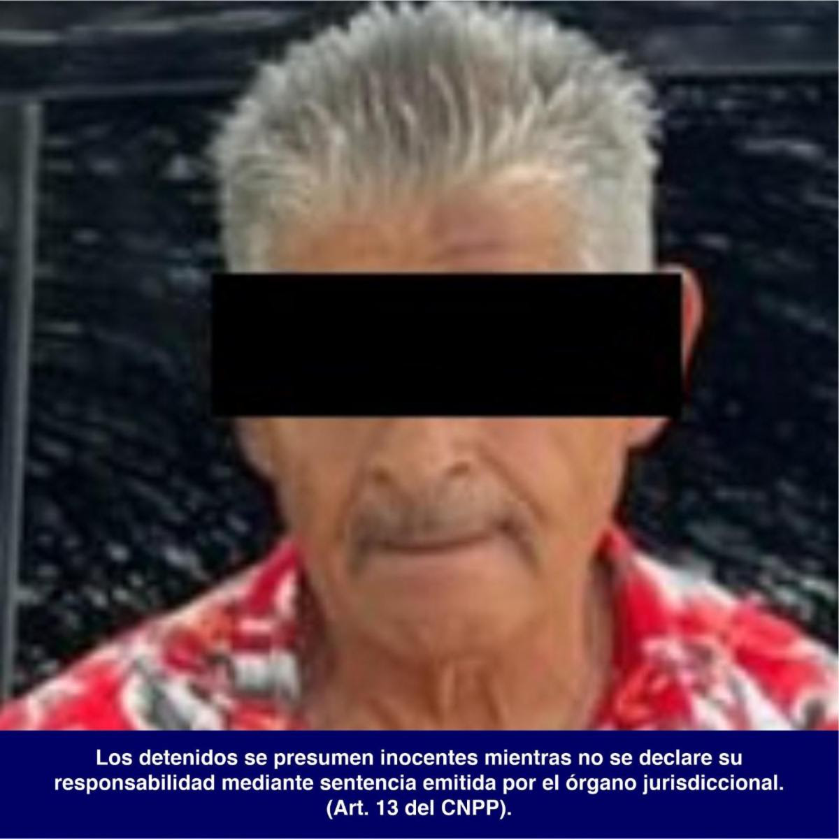 Se informa que la persona detenida se presume inocente mientras no se declare su responsabilidad mediante sentencia emitida por el órgano jurisdiccional correspondiente, conforme al artículo 13 del Código Nacional de Procedimientos Penales (CNPP).