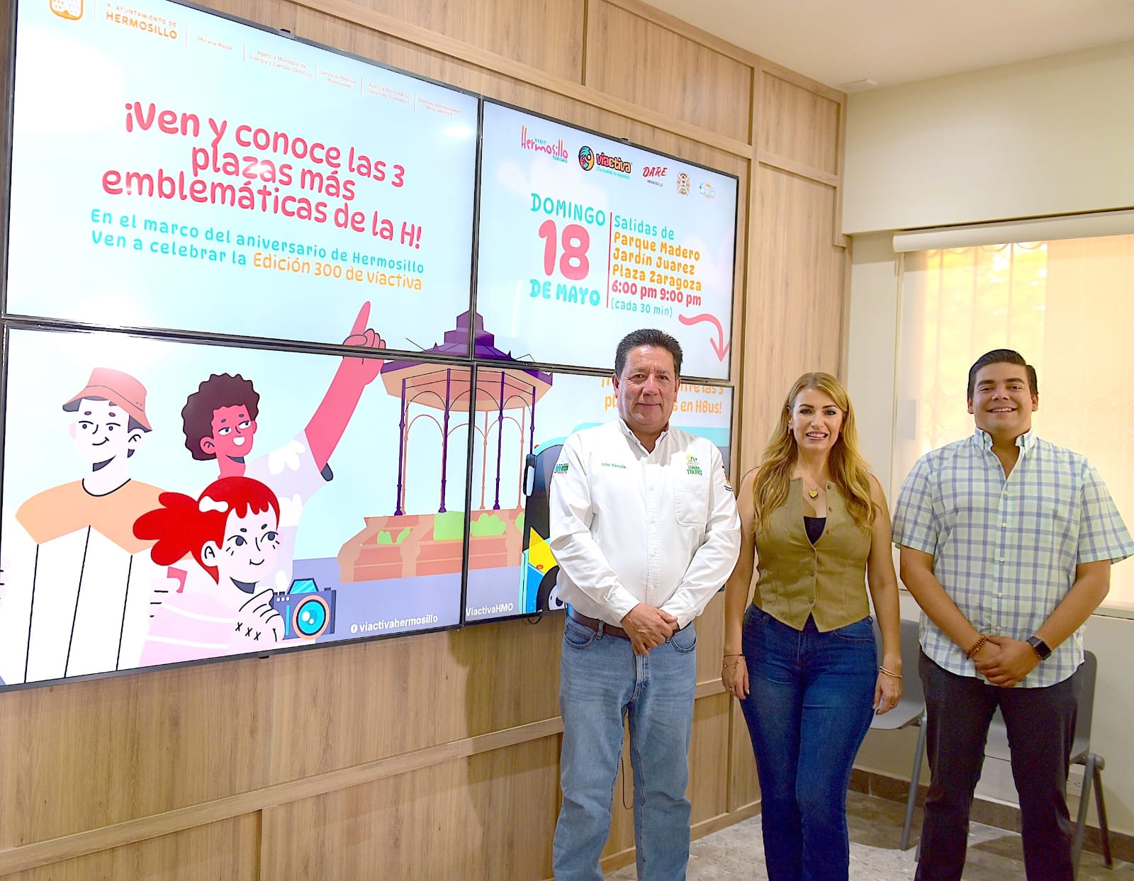 Hermosillo, Sonora 14 de mayo, 2025.- Hermosillo se vestirá de fiesta este 18 de mayo con motivo de su 325 aniversario de fundación, anunció el Gobierno Municipal que ha preparado la edición 300 de Viactiva donde familias podrán disfrutar actividades en la Plaza Zaragoza, Parque Madero y Jardín Juárez.