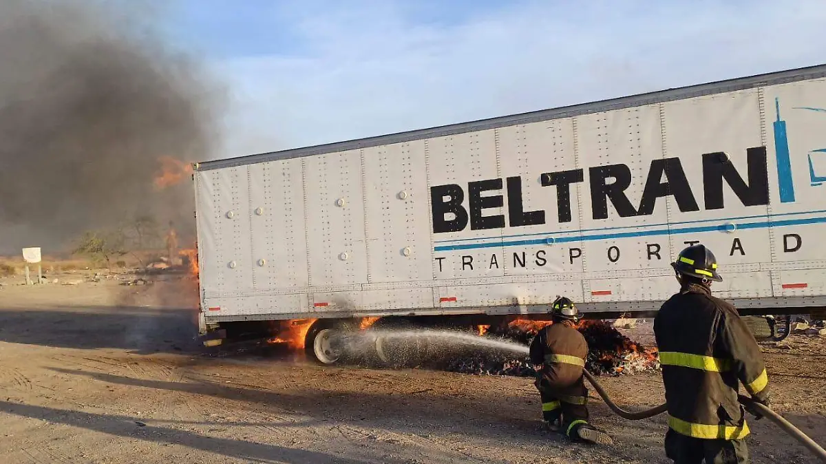 A la altura del kilómetro 165 de la carretera Sonoyta-San Luis Río Colorado, como a 32 de esta ciudad, tuvo lugar la tarde del lunes fuerte incendio en la caja remolque cargado con 35 toneladas de carbón procedente de Caborca y con destino a Tijuana, de un tráiler de la empresa Beltrán, por causas hasta el momento desconocidas.