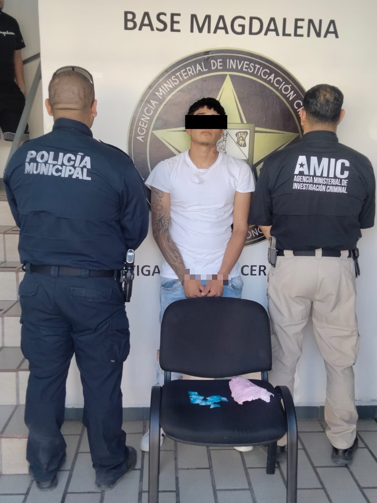 Magdalena de Kino, Sonora, 17 de mayo de 2025.- Elementos de la Agencia Ministerial de Investigación Criminal (AMIC) cumplimentaron una orden de aprehensión por reclusión en contra de Santiago Erubiel “N”, de 21 años, por los delitos de posesión de vehículo con reporte de robo y contra la salud en su modalidad de narcomenudeo, en Magdalena de Kino.