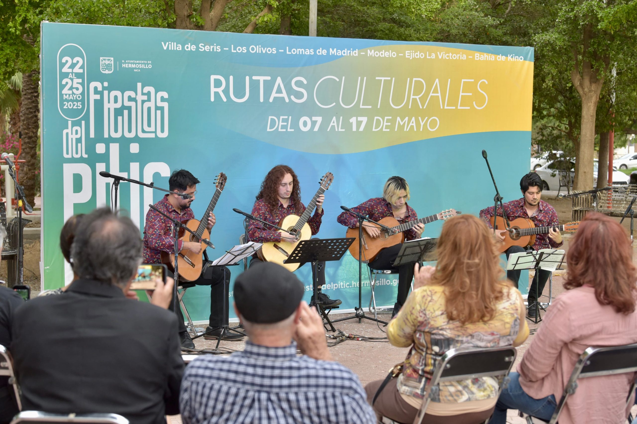 El programa musical inició con el concierto acústico “Sonora, ayer y hoy” del grupo Quasi Quinteto, con temas sonorense y de estados aledaños, con canciones como Viva Tepupa y La Yaquesita.