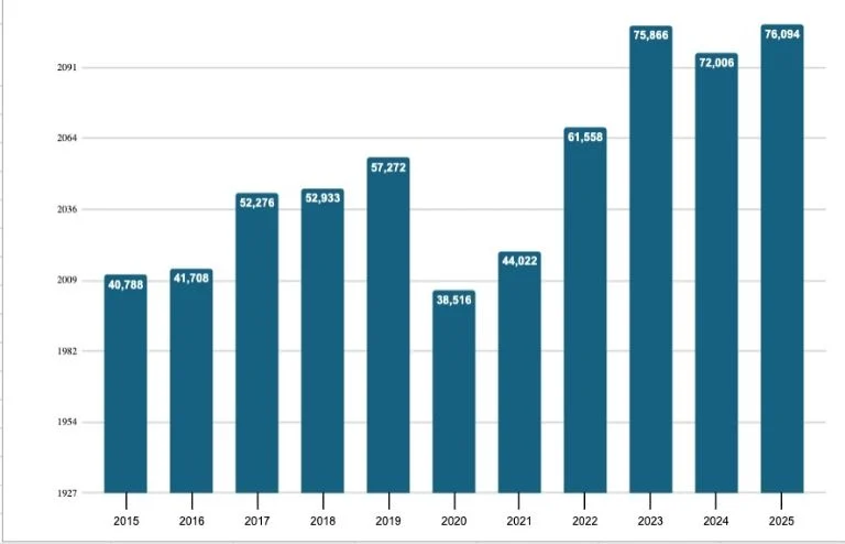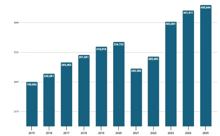 Al cierre de marzo de 2025, el saldo de la cartera de crédito a la vivienda alcanzó 1.45 billones de pesos, 3% más que un año antes. Para vivienda residencial el saldo fue de 1.38 billones de pesos, una cifra récord y un crecimiento anual de 4.2%, en tanto que el crédito para la vivienda de interés social el saldo del crédito es de 5 mil 572 millones de pesos, 10.4% menos que un año antes y una reducción acumulada de 96% real en los últimos 11 años.