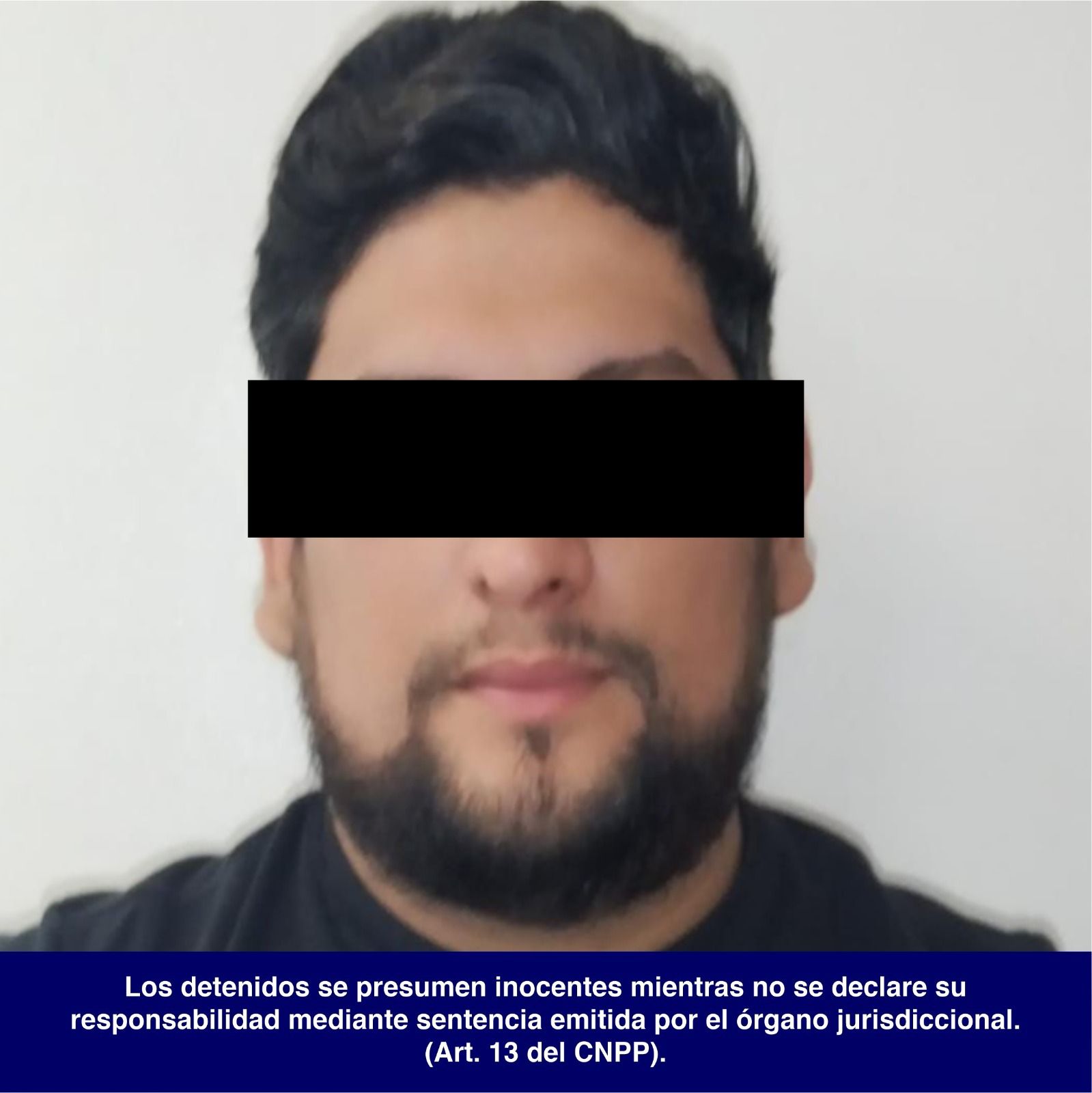 Se informa que la persona detenida se presume inocente hasta que se declare su responsabilidad mediante sentencia emitida por el órgano jurisdiccional correspondiente, conforme al artículo 13 del Código Nacional de Procedimientos Penales.