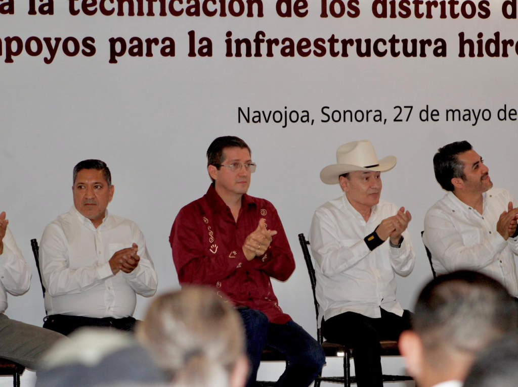 En una gira por Navojoa, junto al Director de Conagua, Efraín Morales López y Aarón Mastache Mondragón, Subdirector General de Infraestructura Hidroagrícola de la Conagua, el Gobernador entregó 250 millones de pesos de apoyo a productores, para fortalecer la infraestructura de sistemas de riego para cultivos, como parte de los 6 mil 500 millones de pesos que se dispersarán durante los próximos 6 años.