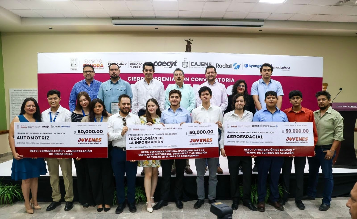 Cajeme, Sonora; 5 de junio de 2025.- Con el objetivo de fortalecer el talento local e impulsar la participación juvenil en sectores estratégicos, el Gobierno de Sonora llevó a cabo la clausura y premiación del programa “Jóvenes Impulsando la Industria”, edición Cajeme, a través de la Secretaría de Economía y Turismo y el Consejo Estatal de Ciencia y Tecnología (Coecyt), en coordinación con la Secretaría de Educación y Cultura y el Ayuntamiento de Cajeme.