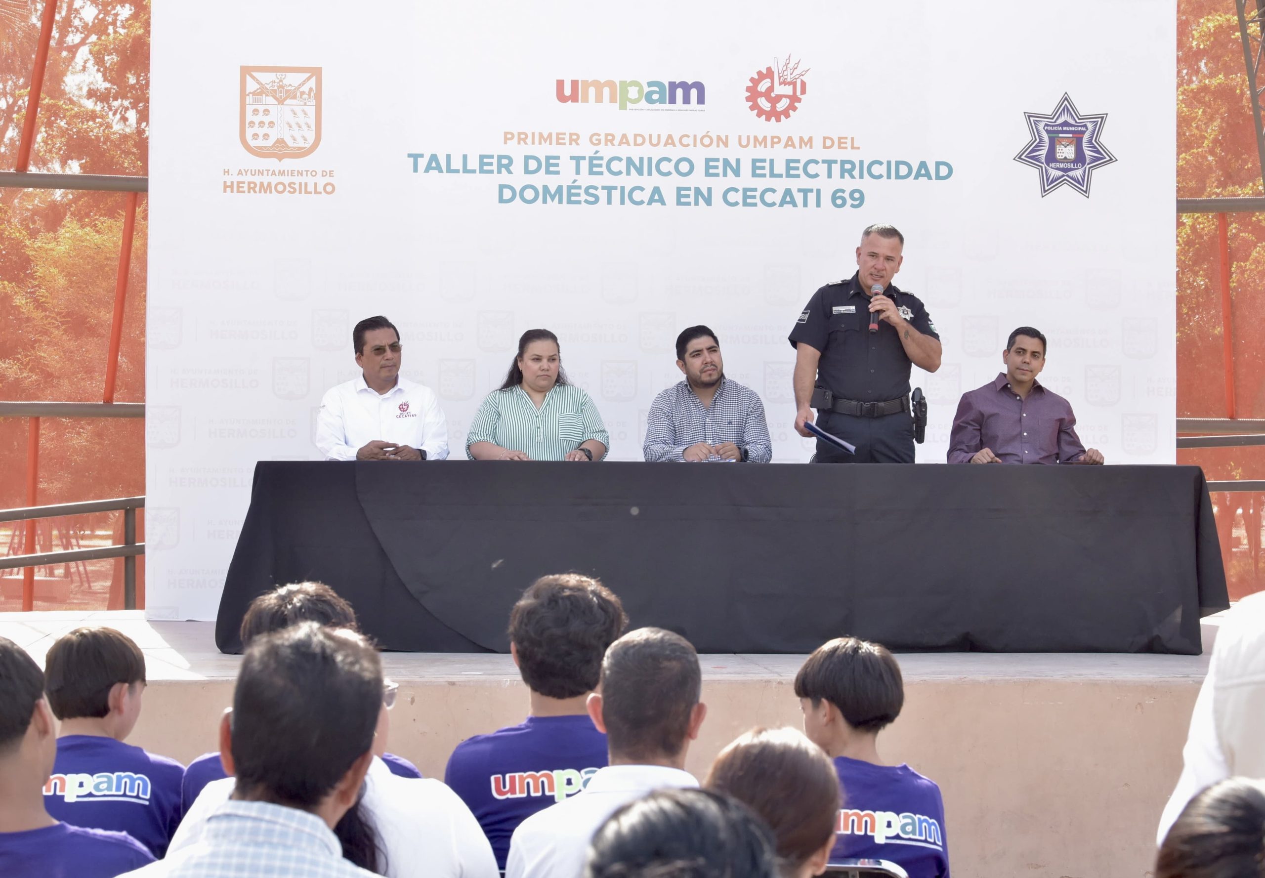 Hermosillo, Sonora; 12 de junio, 2025.- Adolescentes que cometieron faltas administrativas en Hermosillo se graduaron del primer Taller Técnico en Electricidad Doméstica que la Unidad Municipal de Prevención y Aplicación de Medidas (UMPAM) Hermosillo les ofreció como parte de las acciones a favor de su reinserción exitosa a la comunidad, en alianza con CECATI.