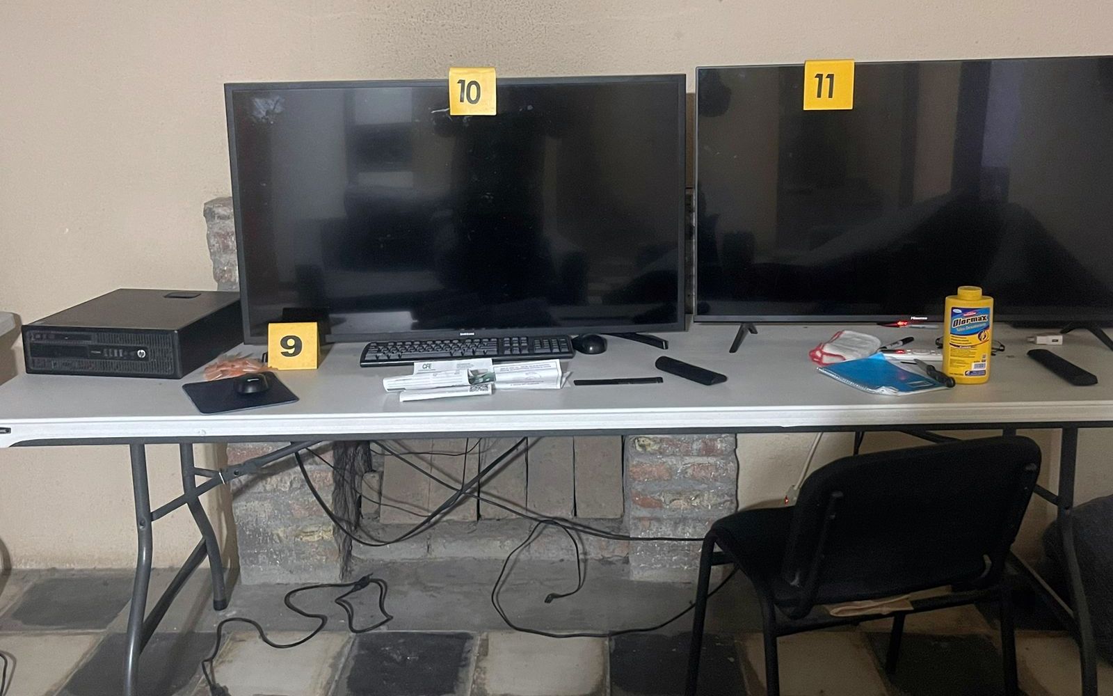 Durante la diligencia, en la colonia Aeropuerto, fue asegurado equipo tecnológico de videovigilancia y cómputo presuntamente utilizado para el monitoreo de actividades de seguridad pública, lo que constituye el delito de atentado contra la seguridad de la comunidad, conocido como “halconeo”.