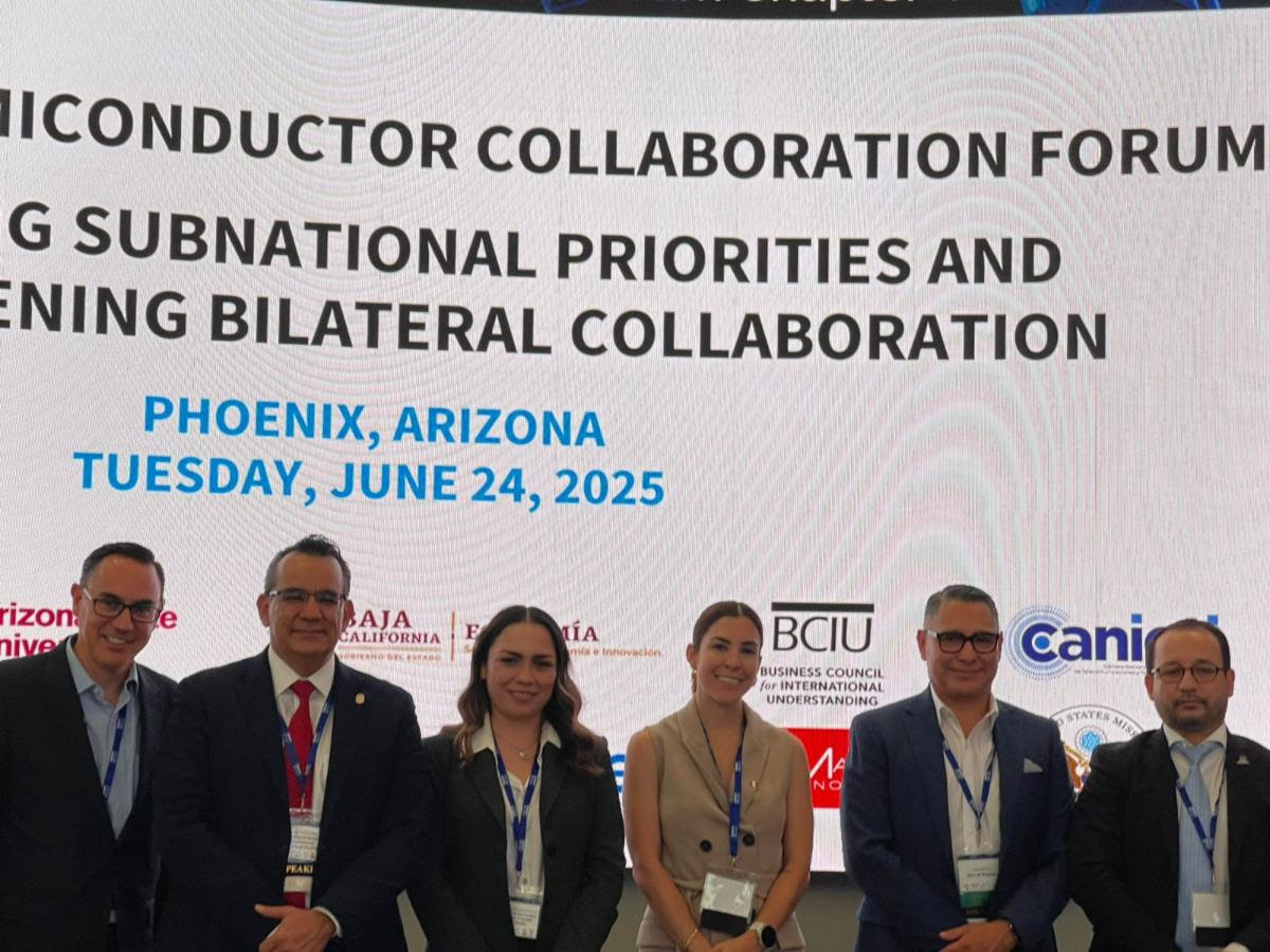 Hermosillo, Sonora; 25 de junio de 2025.- Con el objetivo de fortalecer la integración de la entidad en la cadena de suministro de Norteamérica y generar nuevas oportunidades para jóvenes técnicos y empresas del estado, el Gobierno de Sonora participó en el Foro Binacional de Colaboración en Semiconductores, realizado en Tempe, Arizona,