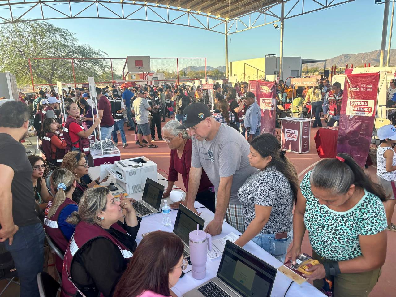 La jornada contó con la participación activa de servidoras y servidores públicos del Gobierno de Sonora, quienes atendieron personalmente a las y los asistentes, escuchando sus necesidades y coordinando los apoyos en territorio.