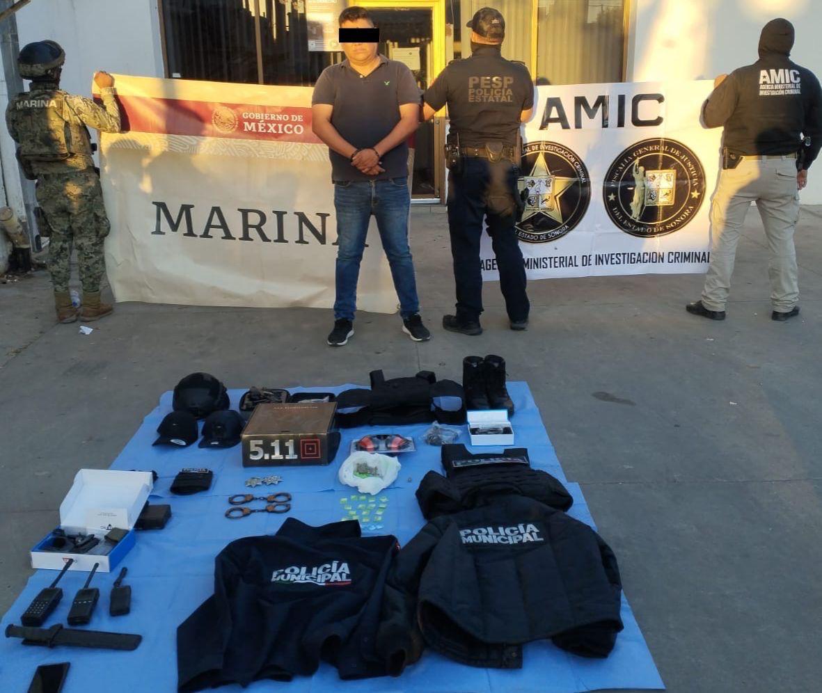 Gabriel Ángel “N”, ex policía municipal, fue capturado en un domicilio de la colonia San Felipe, siendo encontrado en posesión de cuatro vehículos, uno de ellos balizado como patrulla, mientras que Luis Arturo “N”, ex comisario de la Policía Municipal de Magdalena de Kino, fue capturado en un domicilio de la colonia ISSSTESON, siendo encontrado en posesión de treinta y nueve envoltorios con cristal, un envoltorio con marihuana, un Ford Taurus modelo 2013, vestimenta y equipo táctico con la leyenda “Policía Municipal”, entro otros indicios.