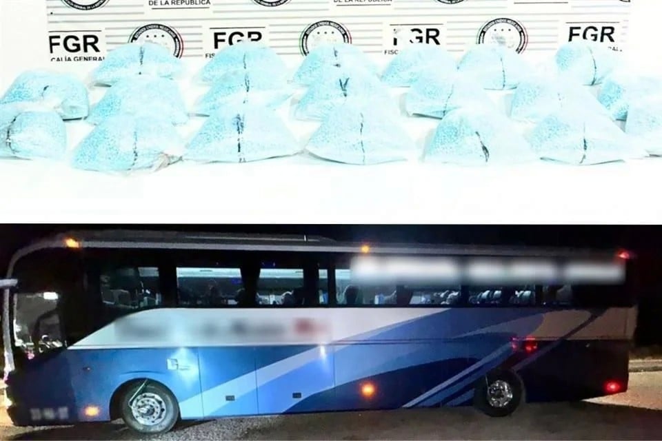Los policías aseguraron 20 bolsas que contenían alrededor de 200 mil pastillas de fentanilo que arrojaron un peso aproximado de 19 kilos 800 gramos, el autobús, entre otros objetos.