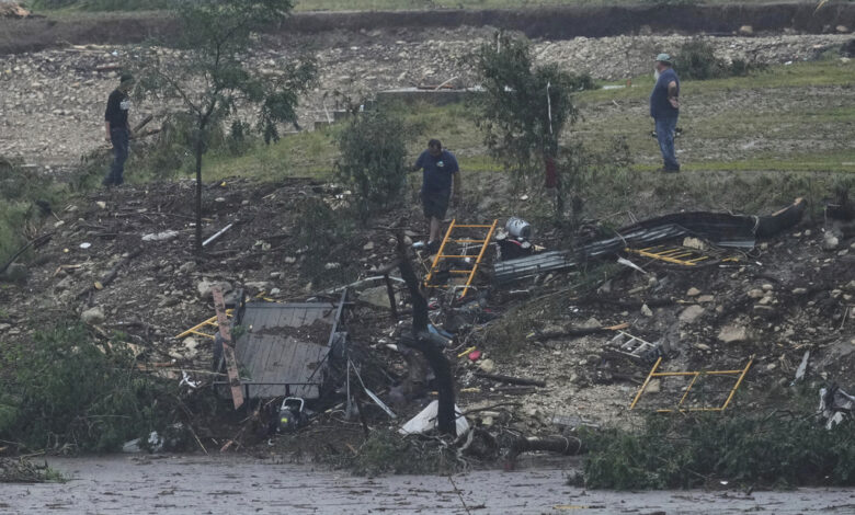 Personas inspeccionan los daños causados por el desbordamiento del río Guadalupe en Kerrville, Texas, el viernes 4 de julio de 2025. (AP Foto/Eric Gay)