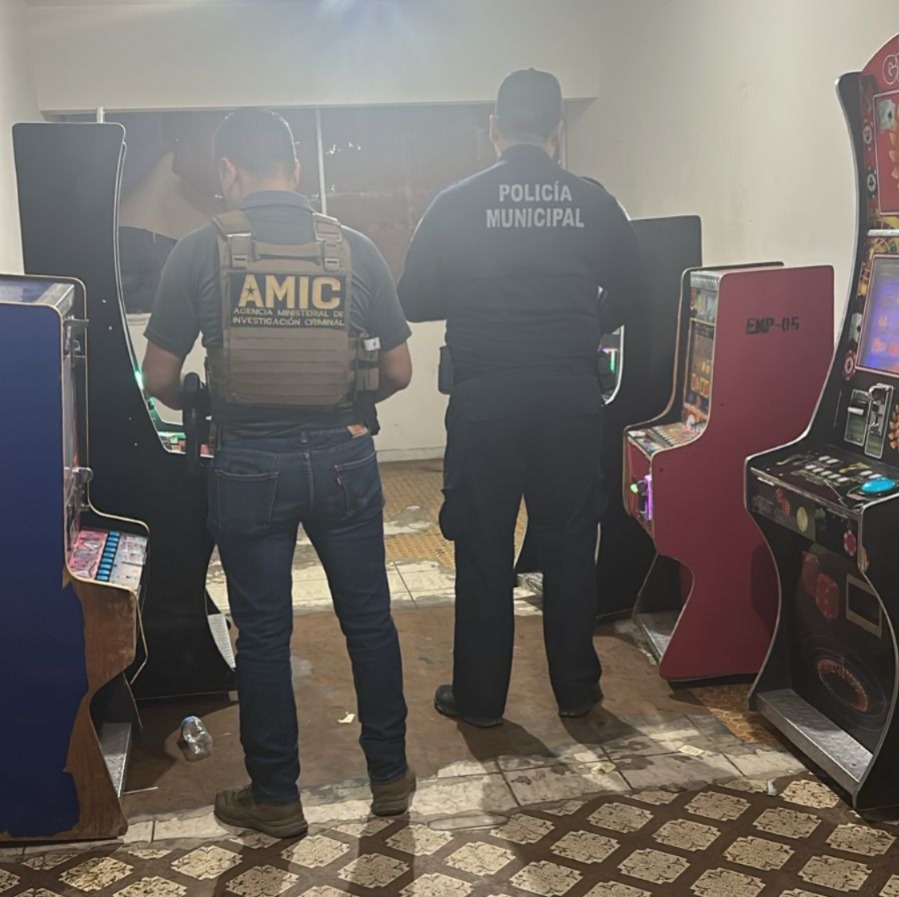 Durante recorridos de reconocimiento y disuasión, se localizaron dispositivos ilegales en negocios ubicados en la Colonia Centro, Colonia Nueva Esperanza, Colonia Emiliano Zapata y Colonia Olivos.