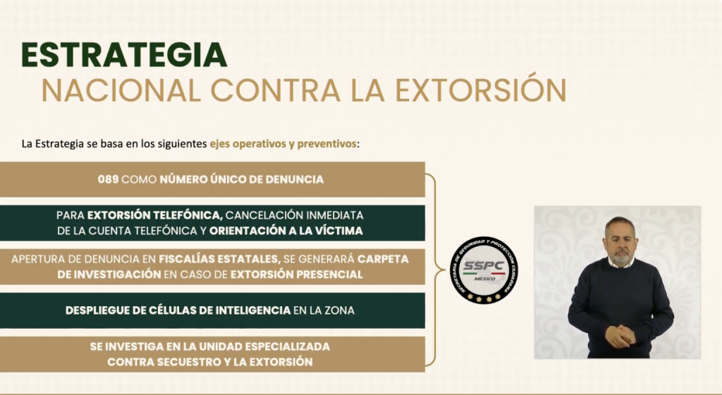 La estrategia también contempla el fortalecimiento de la línea 089, una herramienta de denuncia anónima que estará vinculada con las unidades de investigación estatales y federales.