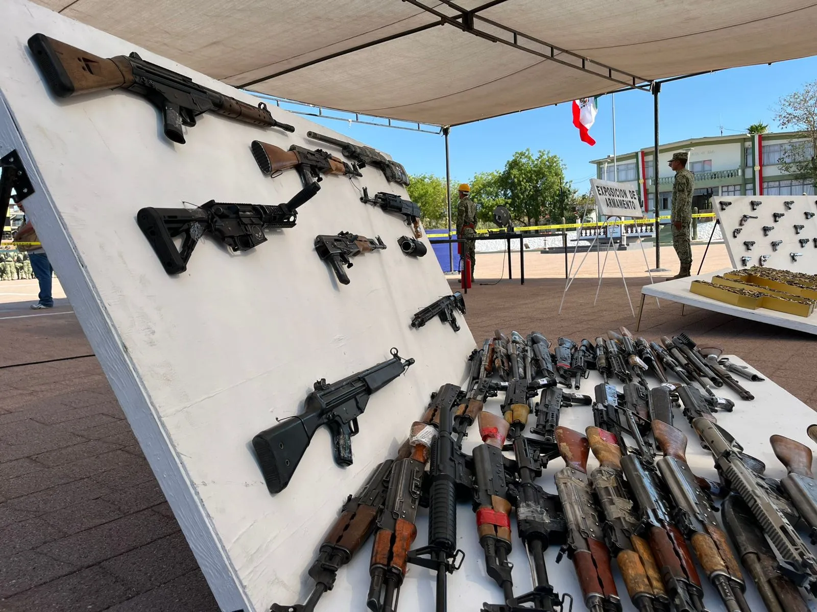 “Esta ceremonia representa una acción concreta en favor de la paz y del Estado de derecho”, afirmó el coronel Córdoba Reynoso, quien destacó que cada arma destruida es reflejo del esfuerzo diario que realizan soldados del Ejército, Fuerza Aérea, Guardia Nacional, Marina, policías estatales y municipales.