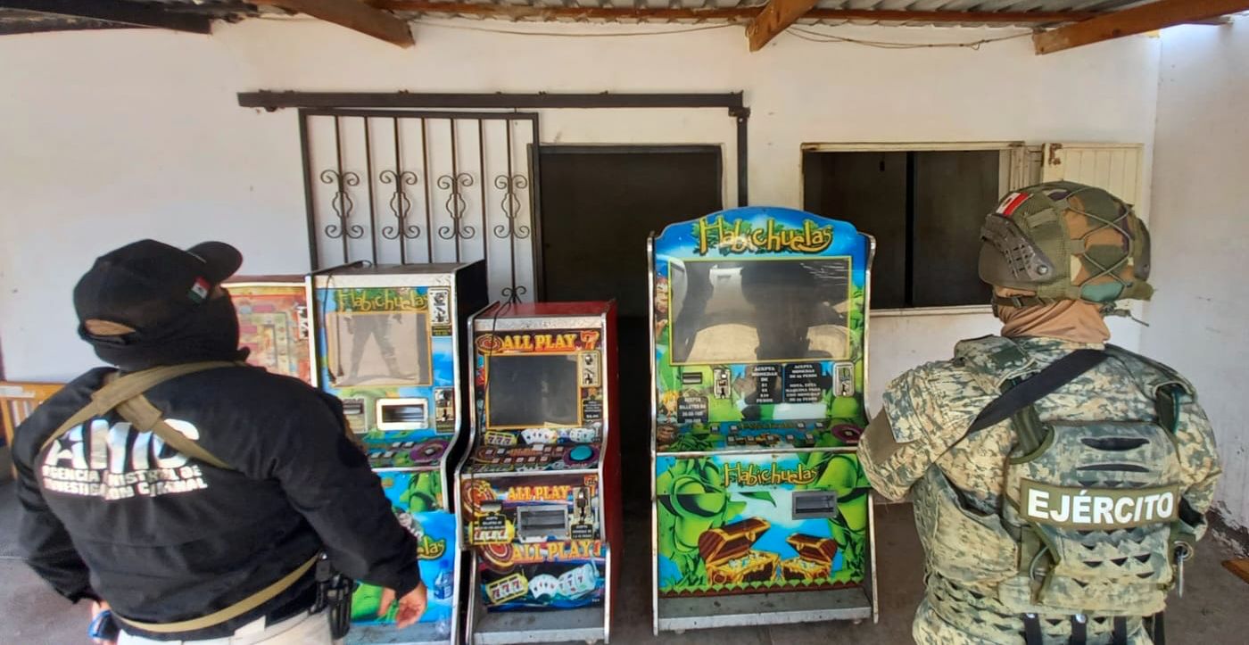 Cajeme, Sonora, 12 de julio de 2025.- En seguimiento a denuncias ciudadanas y derivado de actos de investigación, elementos de la Agencia Ministerial de Investigación Criminal (AMIC), en coordinación con personal de la Secretaría de la Defensa Nacional (DEFENSA), realizaron un operativo conjunto que derivó en el aseguramiento de once máquinas tragamonedas en San Ignacio Río Muerto y Ciudad Obregón.