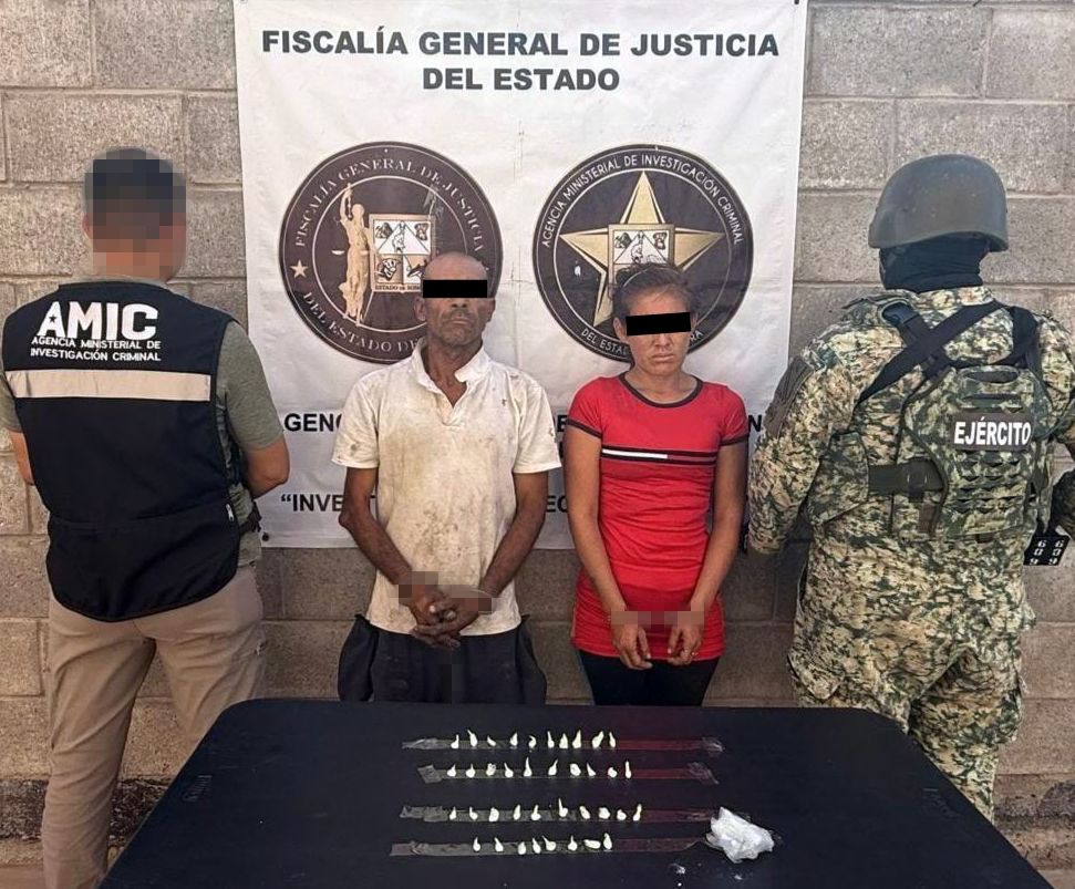 Durante la diligencia fueron asegurados Jesús “N”, de 49 años, y Zaira Judith “N”, de 31, quienes cuentan con antecedentes por narcomenudeo y portación de arma prohibida.